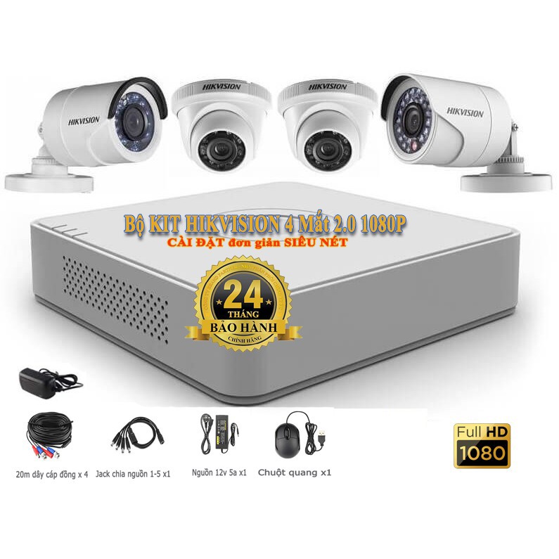 Bộ KIT Camera HIKVISION 4 mắt 1080p Full HD siêu nét lắp đặt đơn giản đầy đủ phụ kiện TẶNG hộp kỹ thuật