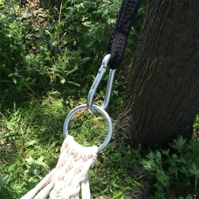 Kit mắc võng đa năng gồm những dây đai và móc, bạn có thể treo võng một cách an toàn từ cây trong sân vườn, mang đi khi du lịch, đi phượt...Các dây được làm từ nylon dày, móc rất bền và an toàn.
