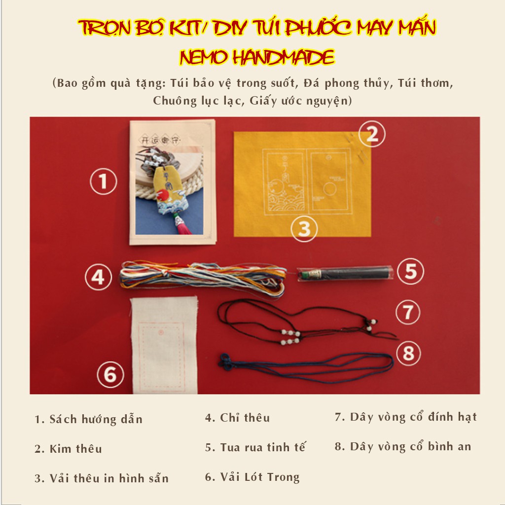 Bộ Kit/Diy Tự Làm Túi Phước Omamori Nhiều Hình Nhiều Ý Nghĩa Nemo Handmade - BKOM17M