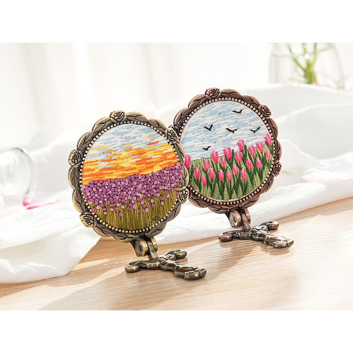 Kit thêu gương gồm:- Vải thêu đã vẽ sẵn hình
