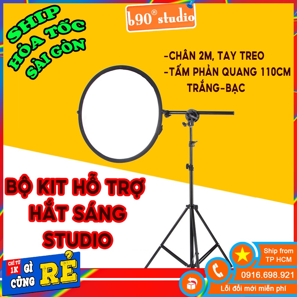 Cameras & Flycam > Phụ kiện máy ảnh > Khác || Bộ kit hắt sáng chân cao tối đa 2m tay treo ngang điều chỉnh được tấm phản quang 110cm màu bạcCòn hàng
