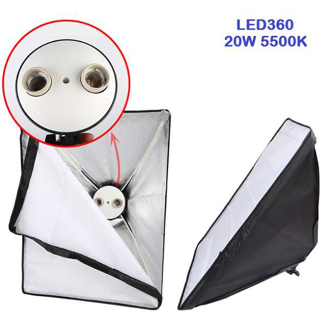 Bộ kit studio 2 đèn 2 bóng LED360 20w là một sản phẩm mới tại thietbiquayphim.com 2018. Bộ đèn 2 chiếc với công suất 80w phù hợp quay phim chụp ảnh với diện tích phòng vừa và nhỏ. Bóng LED360 nhiệt màu chuẩn 5500K cho ánh sáng trung thực, tuổi họ bóng cao lên đến 50.000h. Softbox 50x70cm kèm tản sáng giúp ánh sáng tập trung và mềm mịn và tản đều.THÔNG SỐ KỸ THUẬT: