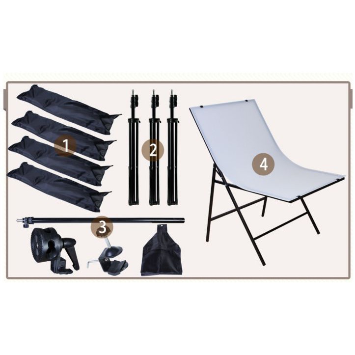 Bộ Kit 4 đèn 1 bàn chụp là sản phẩm hữu hiệu trong việc chụp mẫu sản phẩm, chụp hình diễn viên, làm phim quảng cáo…THÔNG SỐ KỸ THUẬT: