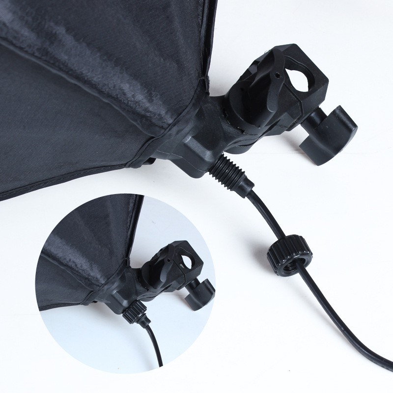 - Softbox: 50x70 cm. Giúp làm mềm ánh sáng chiếu lên vật thể cho hiệu ứng ánh sáng đều hơn và tự nhiên hơn.- Chân đèn: lên đến 2m. Giúp điều chỉnh độ cao và tiện dụng trong việc chụp sản phẩm