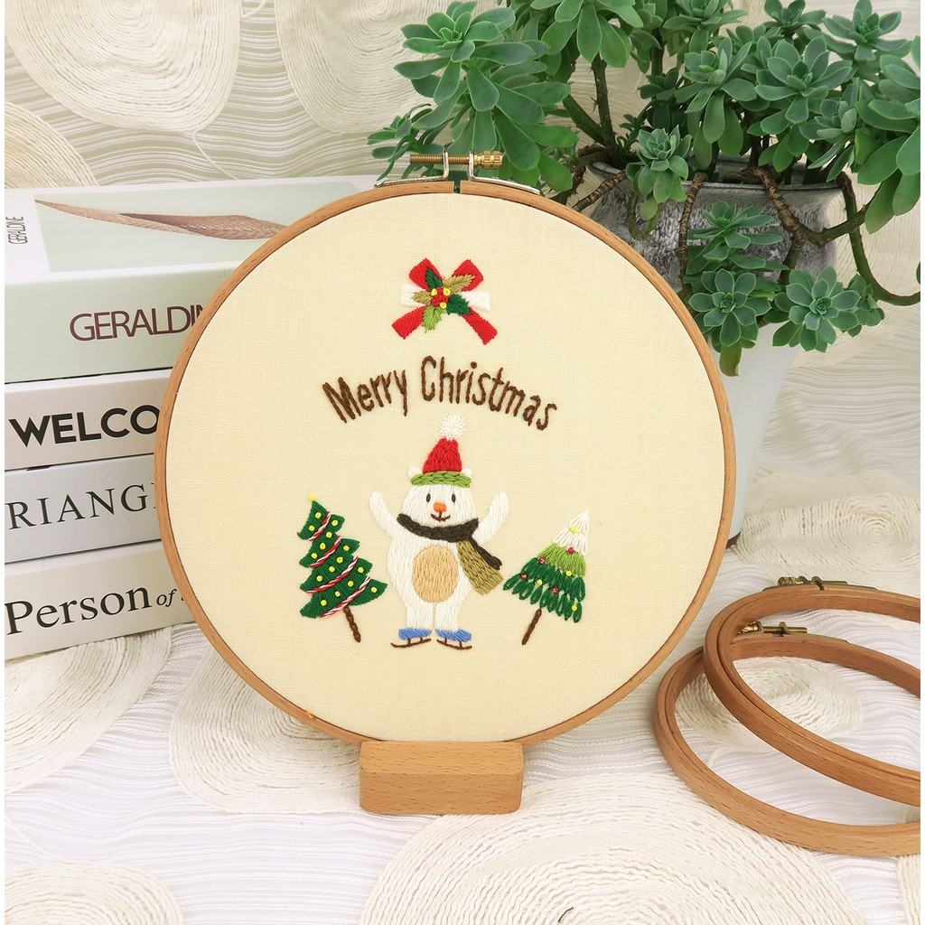 Kit thêu tay dành cho các bạn đang tập tành thêu thùa gồm đầy đủ nguyên vật liệu tập thêu và hướng dẫn chi tiết, dễ hiểu. Kit thêu là các mẫu tranh mang chủ đề Giáng Sinh, vừa luyện thêu vừa có thành phẩm để trưng bày cho mùa Noel năm nay, hoặc dùng để làm quà tặng cũng rất ý nghĩa. Cùng nhau bước vào thế giới thêu thùa may vá thú vị thôi nào!Bộ sản phẩm bao gồm: