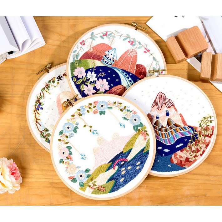 Sở thích & Sưu tầm > Dụng Cụ May Vá || Kit thêu tranh phong cảnh (khung 23cm)Còn hàng