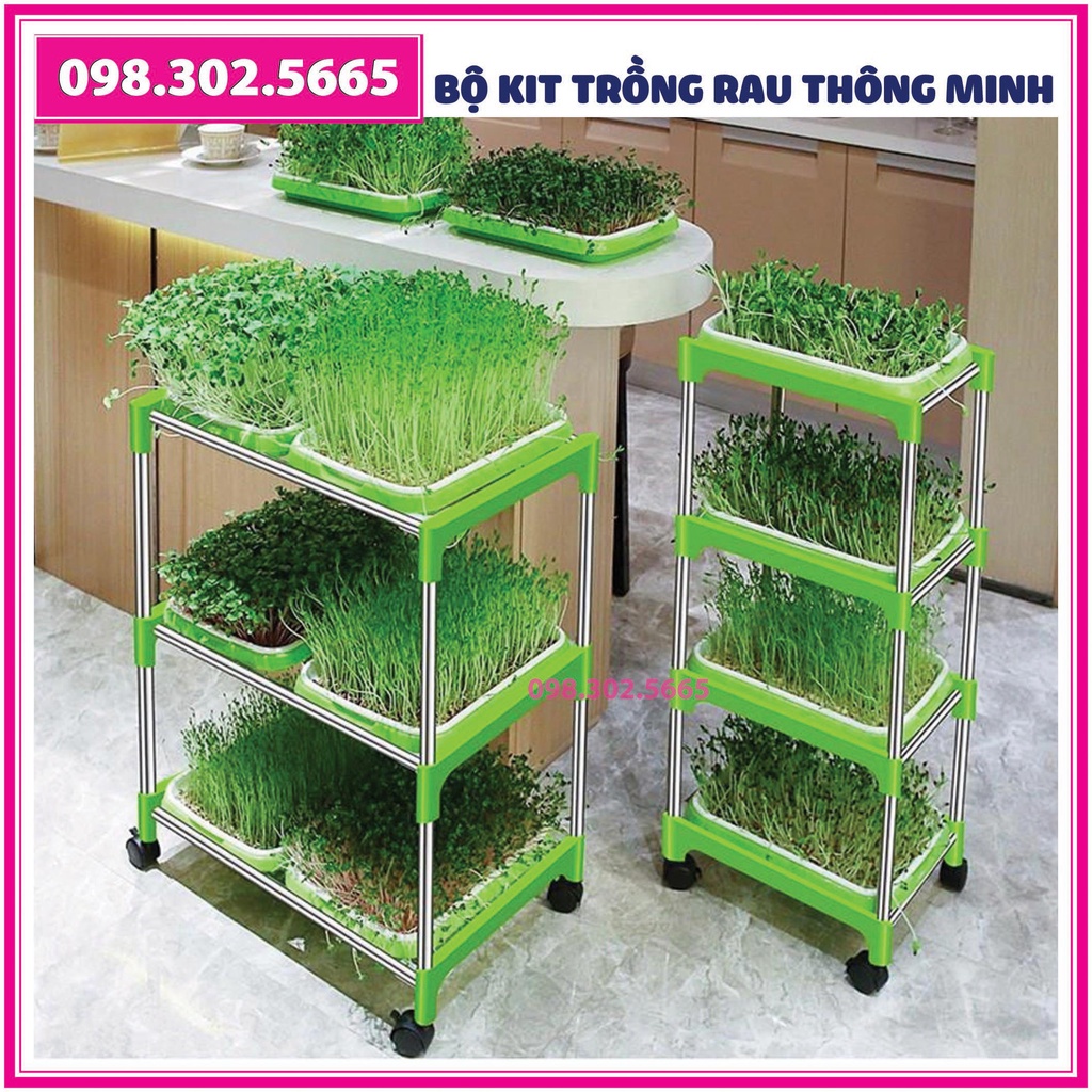 Nhà cửa & Đời sống > Làm vườn > Dụng cụ làm vườn || Bộ Kit trồng rau mầm 4 khay, 4 tầng bao gồm: Giá đỡ có 4 bánh + 4 Khay trồng +200g Hạt giống + VòiCòn hàng