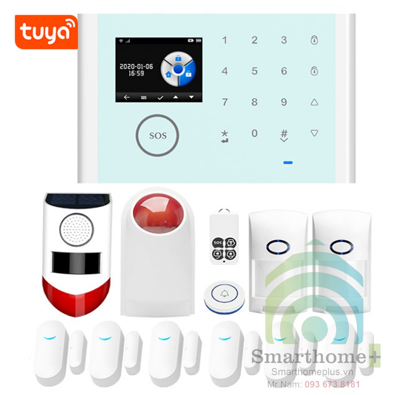 Bộ Kit Trung Tâm Báo Động Không Dây GSM Wifi Tuya SHP-CK8Sản phẩm bao gồm một 1 bộ trung tâm, 1 cảm biến chuyển động hồng ngoại, 1 cảm biến má từ mở cửa, 2 remote điều khiển, 1 loa báo động 12V.