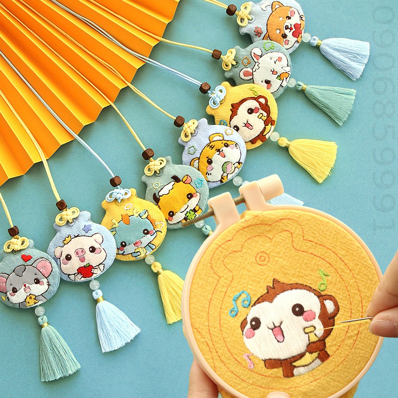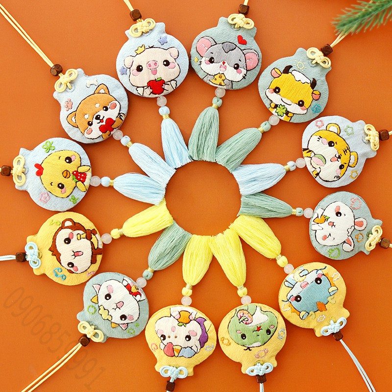 Sở thích & Sưu tầm > Dụng Cụ May Vá || Bộ kit tự thêu hầu bao,dây đeo may mắn 12 con giáp tự làm DIY (Nhiều Mẫu)Còn hàng