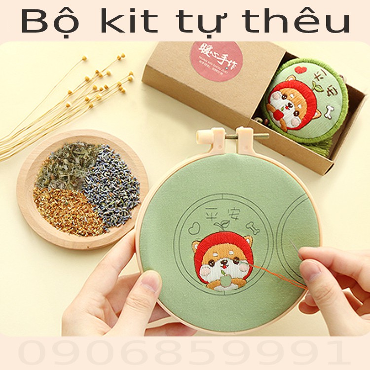 Sở thích & Sưu tầm > Dụng Cụ May Vá || Bộ kit tự thêu túi thơm,dây đeo tròn may mắn tự làm DIY (Nhiều Mẫu)Còn hàng