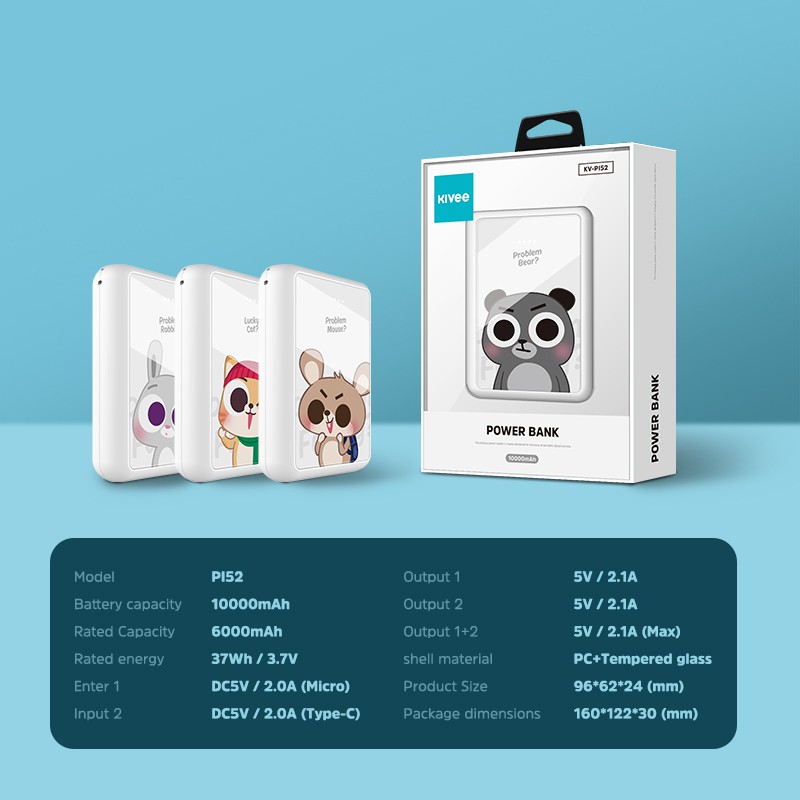 Giới thiệu Kivee Pi52 10000mah Power Bank Cute Cartoon Pattern Dual USB Power Bank