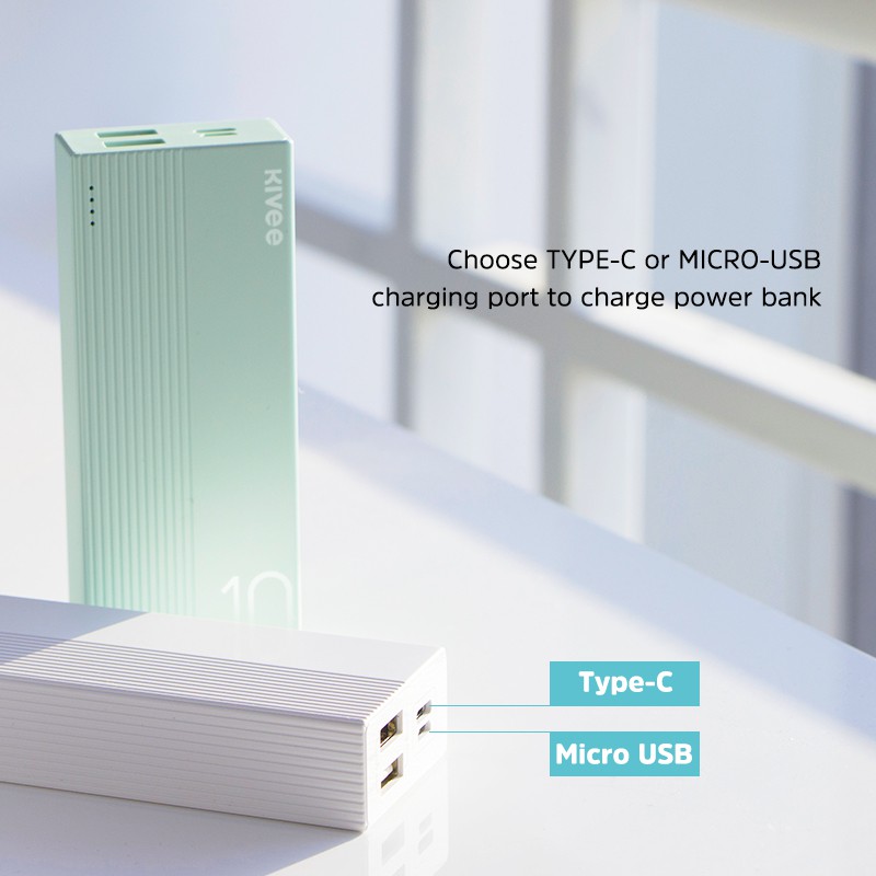 KIVEE PT810 Sạc dự phòng dung lượng pin 10000mah tích hợp giao diện Micro-Usb/Type-C và 2 cổng USB