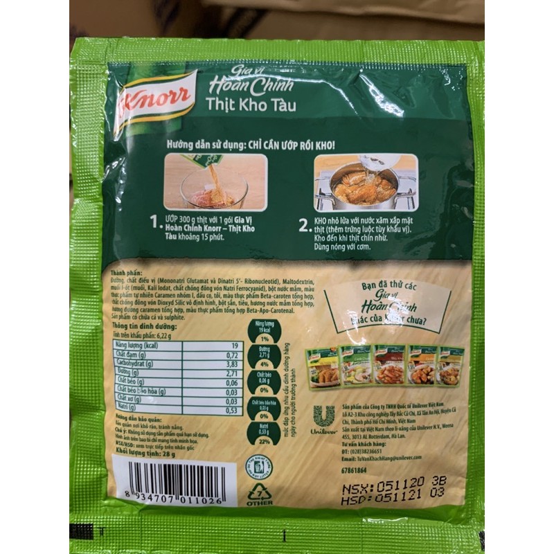 Sử dụng rất đơn giản: Chỉ cần ướp, rồi kho Mỗi gói Knorr GVHC dùng để ướp cho 300g Thịt