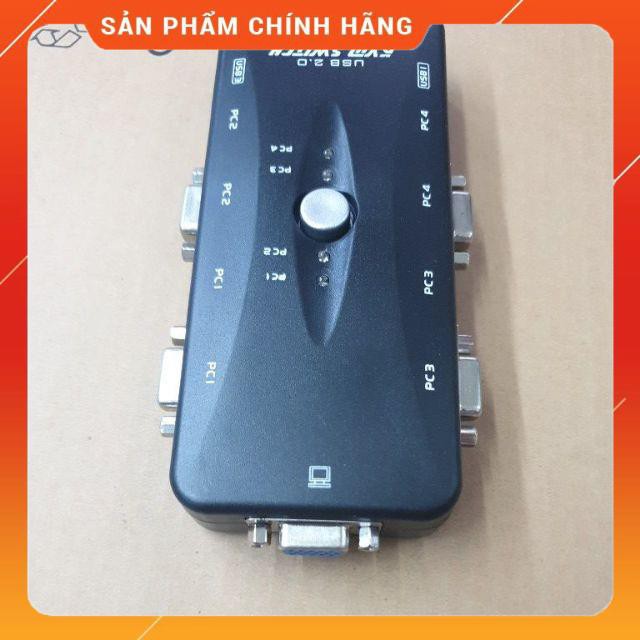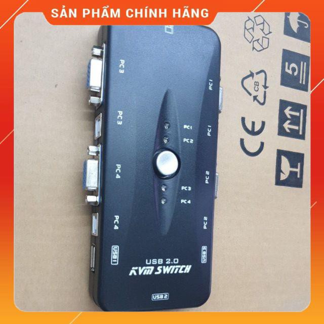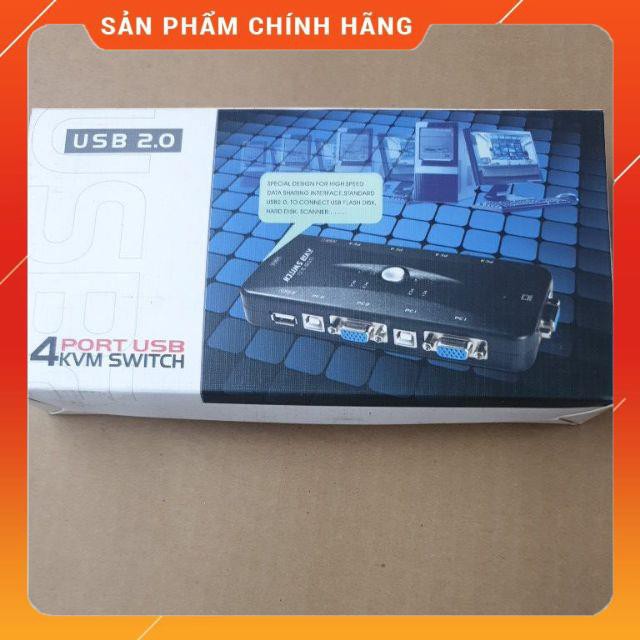 KVM 4 cổng: bộ chuyển mạch cho 4 case máy tính sử dụng chung một màn hình, một bộ phím chuột cổng USB- Một bộ phím, chuột, một màn hình kiểm soát 4 máy tính.