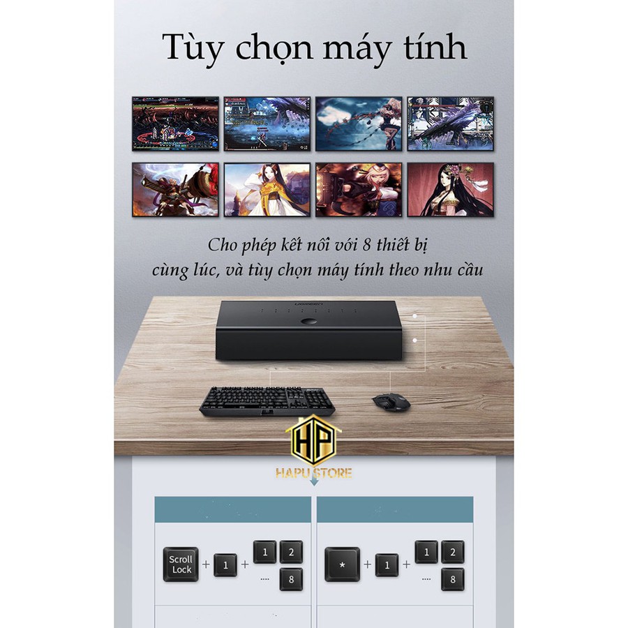[Mã 254ELSALE giảm 7% đơn 300K] Bộ KVM Ugreen 60102 - 1 bộ chuột, bàn phím điều khiển đồng bộ 8 máy tính - Hapustore