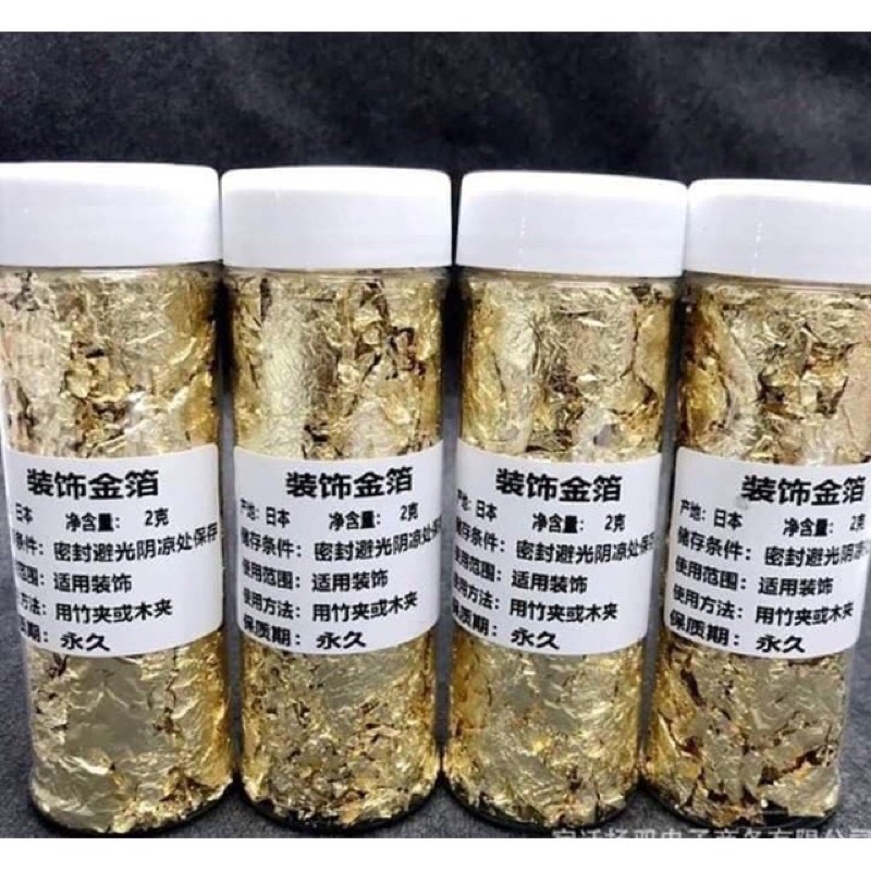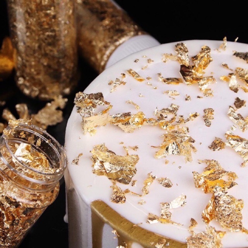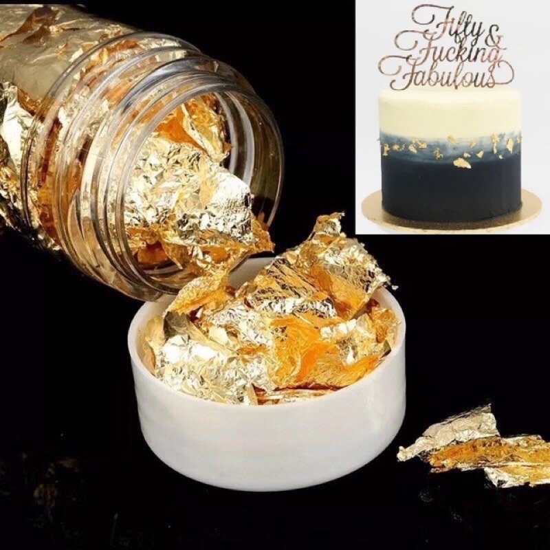 Vàng lá trang trí bánh kem 2gr, lá vàng trang trí bánh, topper cake– Lá vàng, lá bạc cán mỏng ánh vàng, có độ mỏng thích hợp cho việc trang trí món ăn.