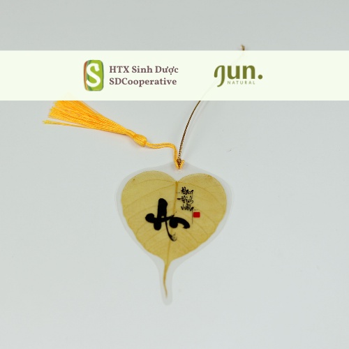 Lá bồ đề in chữ thư pháp treo xeNguyên liệu: Từ xương lá cây bồ đề đã được nhuộm màu
