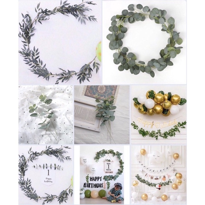 lá shop có nhiều mẫu như lá bạch đàn, lá táo dài, lá táo nhỏ để decor kèm bóngliên hệ mua sỉ, đặt hàng qua zalo
