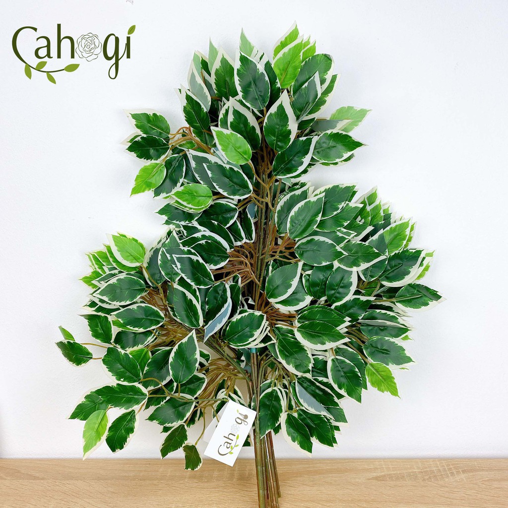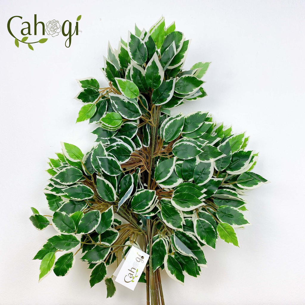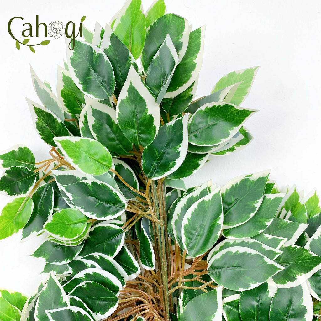 Giới thiệu Lá Cây Giả Trang Trí-Cành Si Làm Cây Si Xanh Viền Trắng-Chịu Nắng Mưa 60x40 Cm