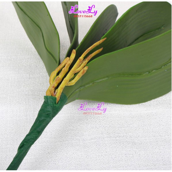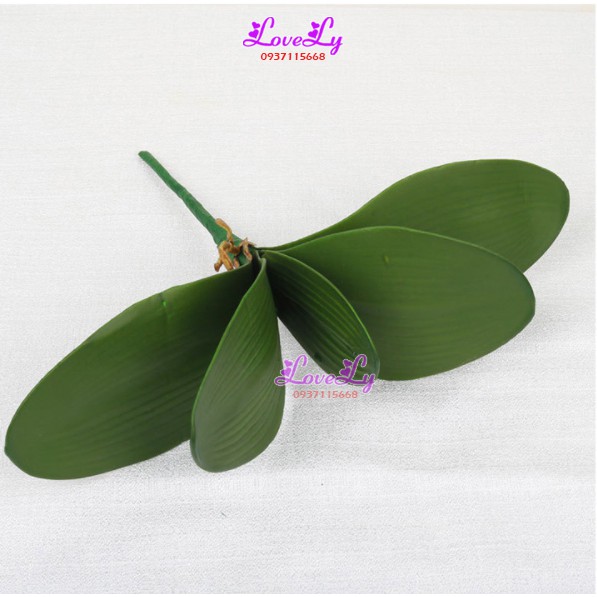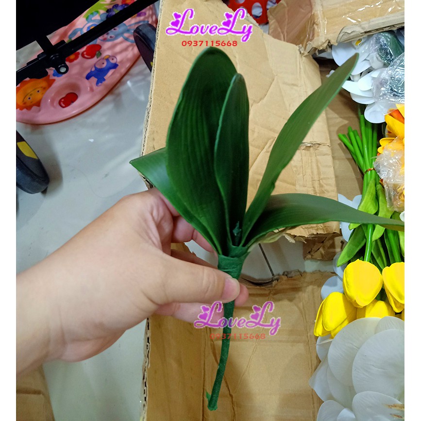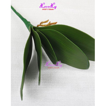 Lá lan hồ điệp chất liệu cao su, 1 cụm được 5 lá như hình, màu sắc giống thật 99% .Có rễ đi kèm.