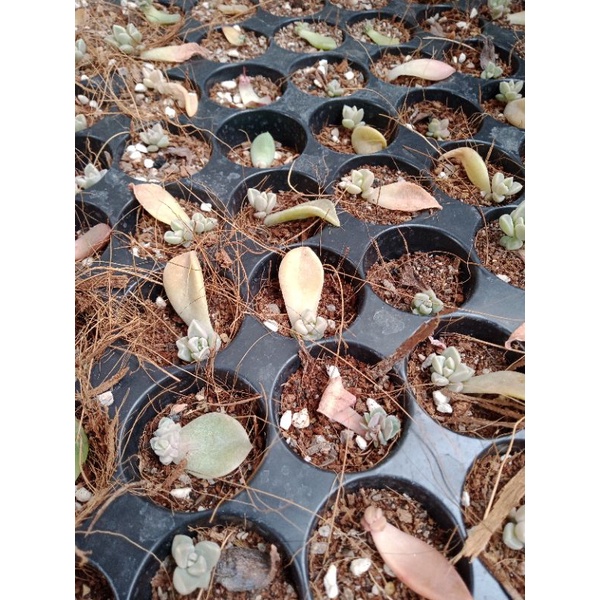 Nhà cửa & Đời sống > Làm vườn > Cây cảnh || Lá mầm Sen Đá Mộc Châu giá chỉ 1k (đủ rễ và mầm con) - NeyuhGardenCòn hàng