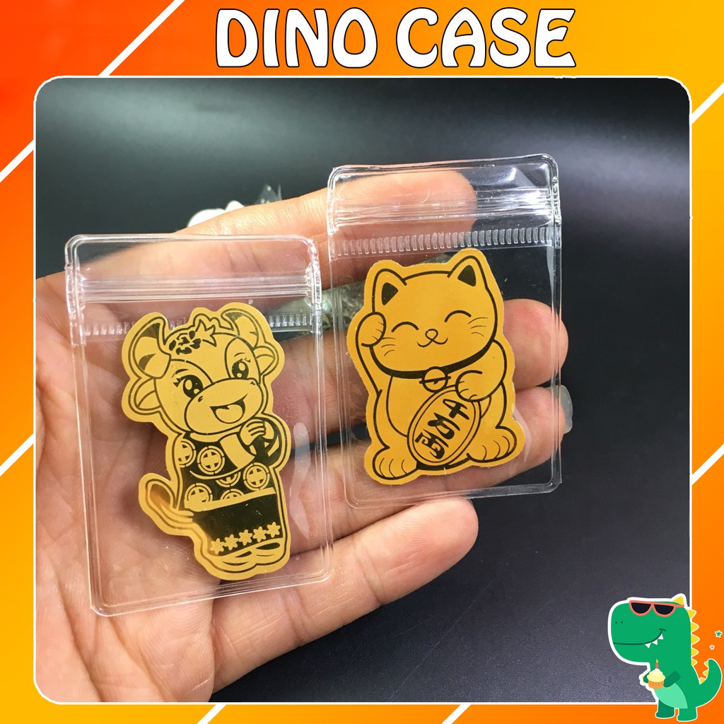Giới thiệu Lá vàng Mèo Thần Tài, Trâu Thần Tài Mạ 18K rước Tài Lộc - May Mắn để trong Ốp điện thoại,Ví – Dino Case tết