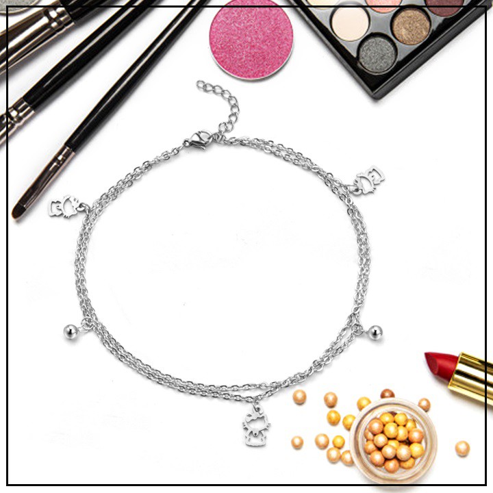 • Màu sắc trắng sáng của lắc chân mèo Hello 2 tầng đáng yêu cũng là một điểm cộng. Màu trắng luôn được xem là gam màu vừa dịu dàng lại không kém phần tinh khôi thanh lịch. Cũng vì thế mà những phụ kiện trang sức gam màu trắng sáng luôn được nhiều người ưa chuộng.
