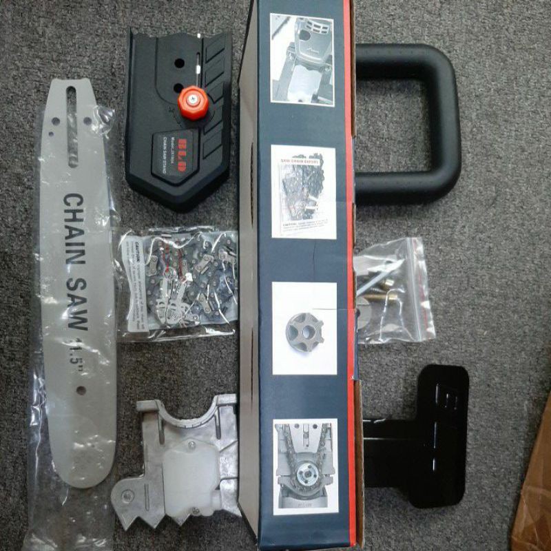 Máy mài góc là một dụng cụ điện cầm tay đa năng nếu gắn đá mài thì có thể mài các mặt phẳng, khi gắn đá cắt thì biến thành máy cắt có thể cắt được cả sắt, có khi nào bạn nghỉ sẽ biến hóa chiếc máy mài góc thành máy cưa xích chưa?? Bạn cần máy cưa xích để tiến hành cắt cành hay làm một số việc đơn giản nhưng ngại bỏ số tiền lớn ra mua hay vì kiểu dáng của máy cưa xích khá nặng và cồng cềnh khi sử dụng xong, bạn không biết phải bảo quản thế nào. Bộ dụng cụ cưa xích này sẽ giúp bạn giải quyết được vấn đề này, bộ dụng cụ này gồm 1 lưỡi cưa xích và một số phụ kiện để biến chiếc máy mài góc thành máy cưa xích. Ưu điểm của bộ sản phẩm này là dễ sử dụng, hướng dẫn kĩ trước khi mua, có thể giúp bạn dễ dàng lắp đặt. Được người tiêu dùng tin tưởng, bộ dụng cụ này tuy có mức giá rẻ đạt chất lượng, độ bền cao, phần lưỡi cưa được làm từ hợp kim thép tốt có thể chống mài mòn, rỉ sét...