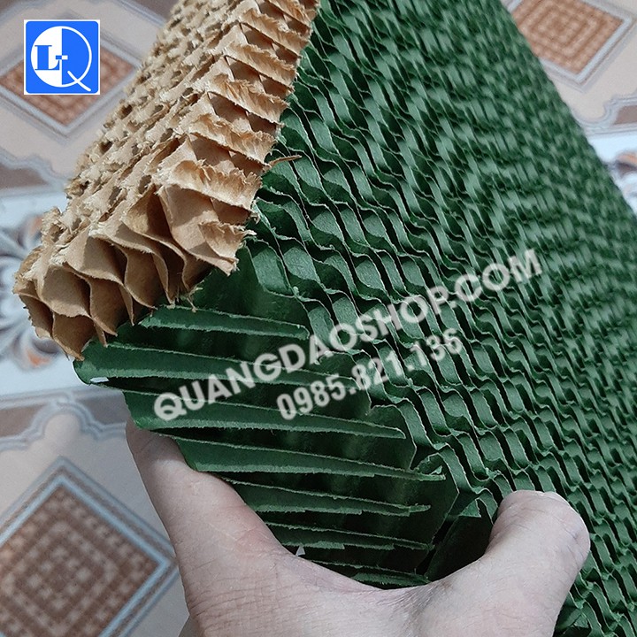 *Là loại tấm Cooling Pad chuyên dụng dành cho quạt điều hòa hơi nước, với lỗ sóng nhỏ và độ dày tấm 5cm là độ dày tiêu chuẩn của các hãng quạt điều hòa hơi nước.