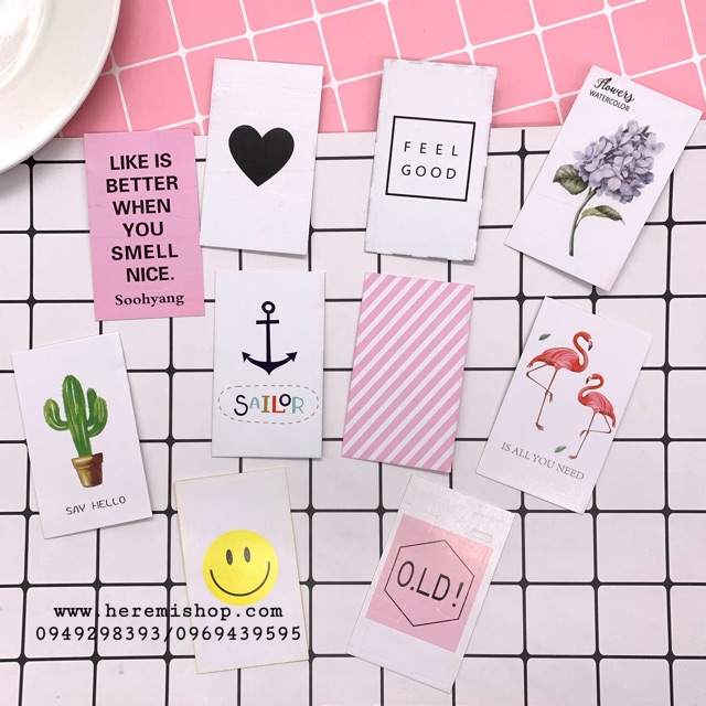 Tấm làm nền chụp ảnh siêu xinh giúp bức ảnh của khách thêm phần sinh động và sang chảnh ạ.Giá lẻ:15k/bộ 10 tấm, kích thước mỗi tấm là 9x5cm, các tấm đều có 2 mặt ảnh