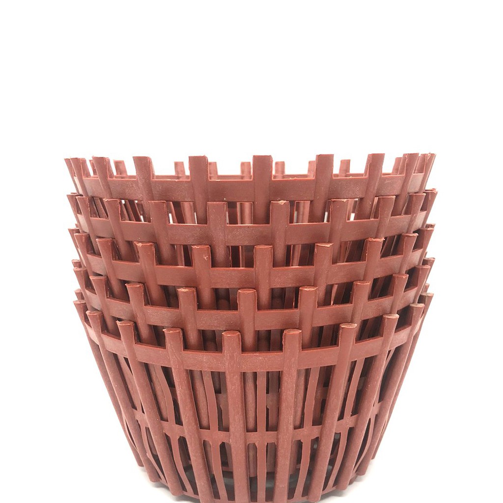 -Chậu được đúc nguyên khối, ngoài những thanh nhựa chính chậu cây còn được kèm thêm các nan phụ cùng hai vành đai xung quanh thân chậu cây giúp chậu cây chắc chắn và không để các giá thể lọt qua khi mới ghép chậu.