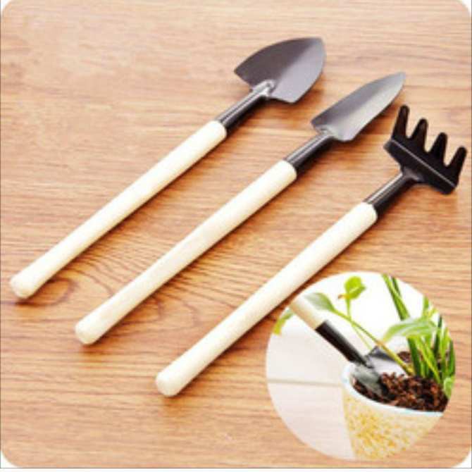 - Bộ 3 món dụng cụ mini trồng cây tiện lợi là vật dụng hữu ích giúp bạn trồng cây và chăm sóc cây trồng của mình một cách dễ dàng và nhanh chóng.- Bộ dụng cụ bao gồm 1 chiếc xẻng, 1 xúc đất và 1 chiếc cào với phần lưỡi làm bằng kim loại phủ sơn tĩnh điện và phần cán làm bằng gỗ. Kích thước mỗi món chỉ dài khoảng 22cm, rộng lưỡi khoảng 3.5cm nên rất nhỏ gọn, bạn có thể dùng để đào xới các chậu cây cảnh mini dễ dàng.