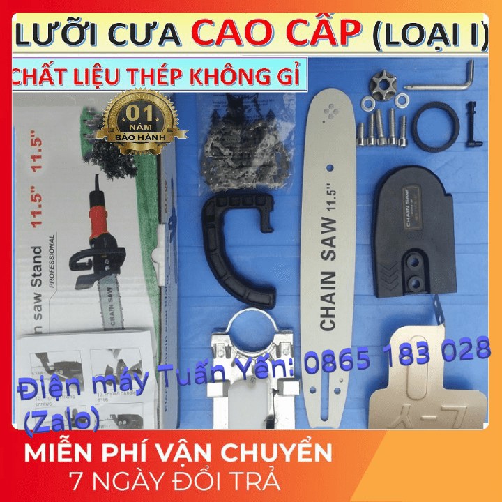 Nhà cửa & Đời sống > Dụng cụ & Thiết bị tiện ích > Dụng cụ > Cưa, máy cắt & máy mài || Lam xích lưỡi cưa gắn máy mài máy cắt, tra dầu tự động Chain Saw 11.5'Còn hàng