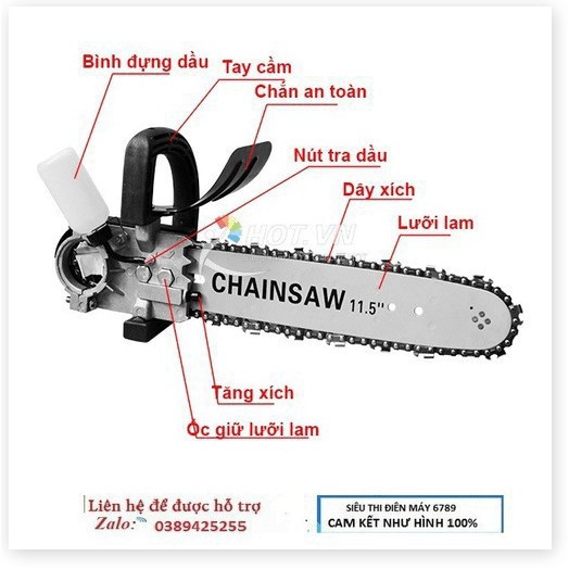 Nhà cửa & Đời sống > Dụng cụ & Thiết bị tiện ích > Dụng cụ > Cưa, máy cắt & máy mài || Lam xích lưỡi cưa gắn máy mài máy cắt, có tra dầu tự động Chain Saw 11.5'Còn hàng
