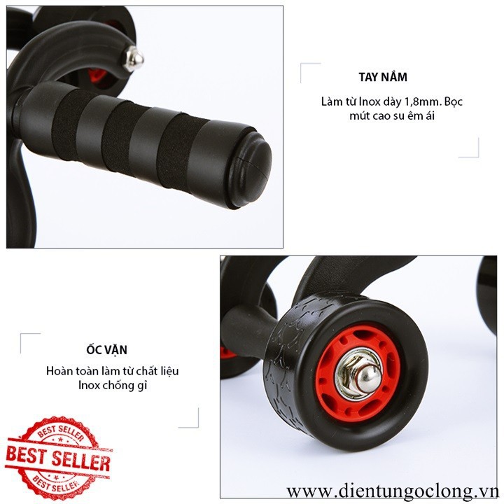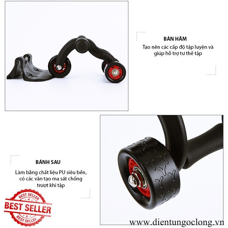 Dụng cụ với thiết kế vượt trội 4 bánh theo hình tam giác giúp bạn đốt cháy mỡ thừa và rèn luyện cho cơ bắp săn chắc và hình thành các cơ.