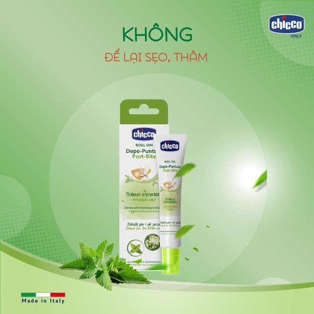 Lăn bôi vết muỗi đốt và côn trùng cắn Chicco có tác dụng xoa dịu, làm mát, giảm sưng nhanh các vết muỗi đốt, côn trùng cắn.✅Thành phần tự nhiên chống nhiễm khuẩn - hoạt chất Zanthoxylum từ cây Hoa tiêu và tinh chất Bạc Hà.