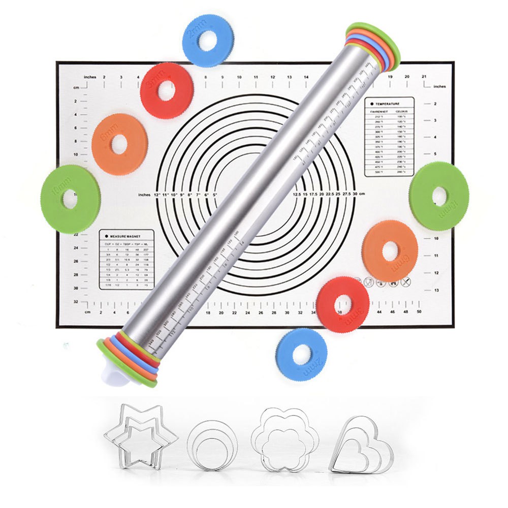 Nhà cửa & Đời sống > Dụng cụ nhà bếp > Dụng cụ nướng & trang trí bánh || Cây lăn bột inox 43cm có thể điều chỉnh theo độ dày của bộtCòn hàng