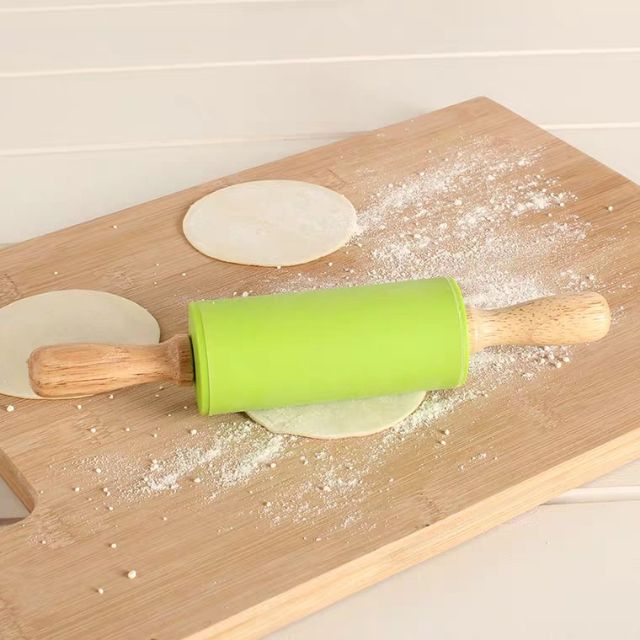 Cây lăn bột, cán bột tay gỗChất liệu: silicon+ gỗ.