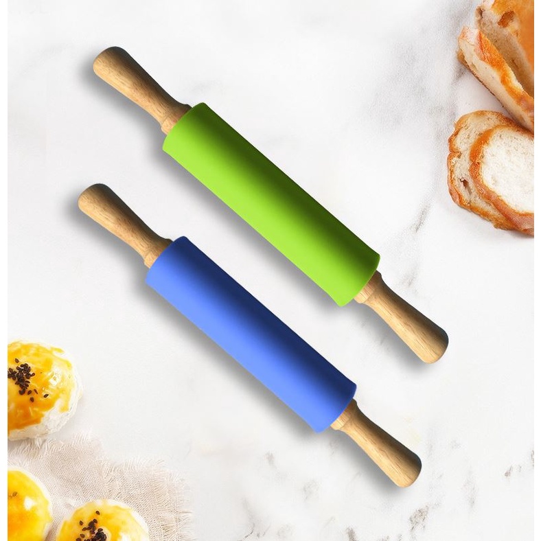 Giới thiệu Cây lăn bột silicon tay gỗ để làm bánh 30cm