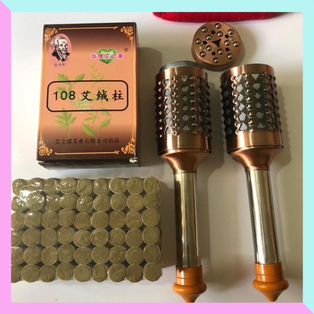 Thanh lăn đồng đôi và điếu ngải gồm 2 thanh đồng và 1 hộp điếu ngải