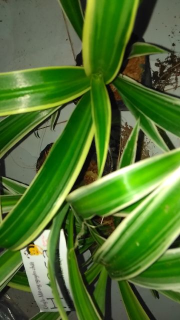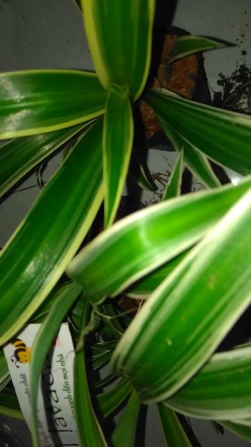 Cây thuộc dạng thân cỏ mọc bụi nhỏ, cao 30-40cm, rễ phình thành củ nhỏ nằm dưới đất.Lá mọc sát đất, dạng hình giáo, kéo dài ở đầu, màu xanh bóng nổi rõ hai dải màu trắng dọc theo mép lá.
