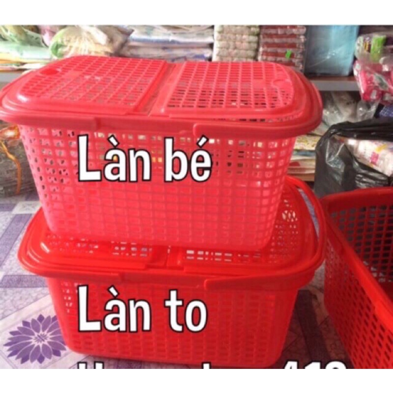 Làn nhựa cỡ to đại ,kích thước 50+40+26,làn dày dặn,có 2ben nắp dùng để đay khi lúc cần,