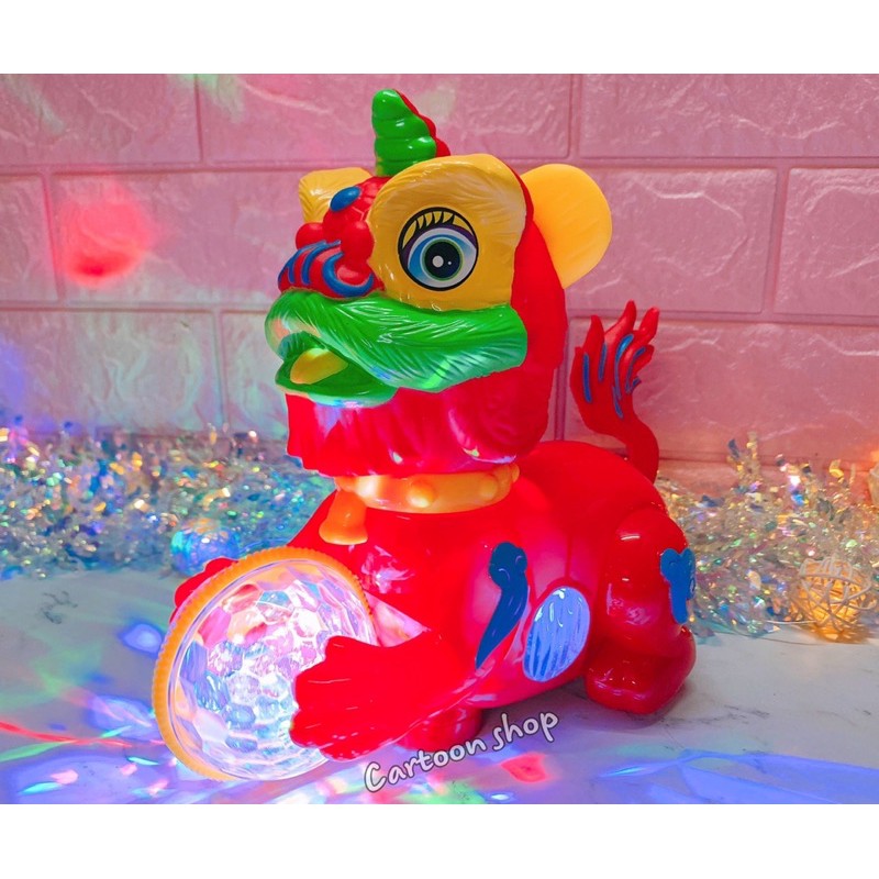 Lân pin đi theo nhạc phát đèn led 7 màu cực xinhKích thước : 20 x 22 x 10 cm