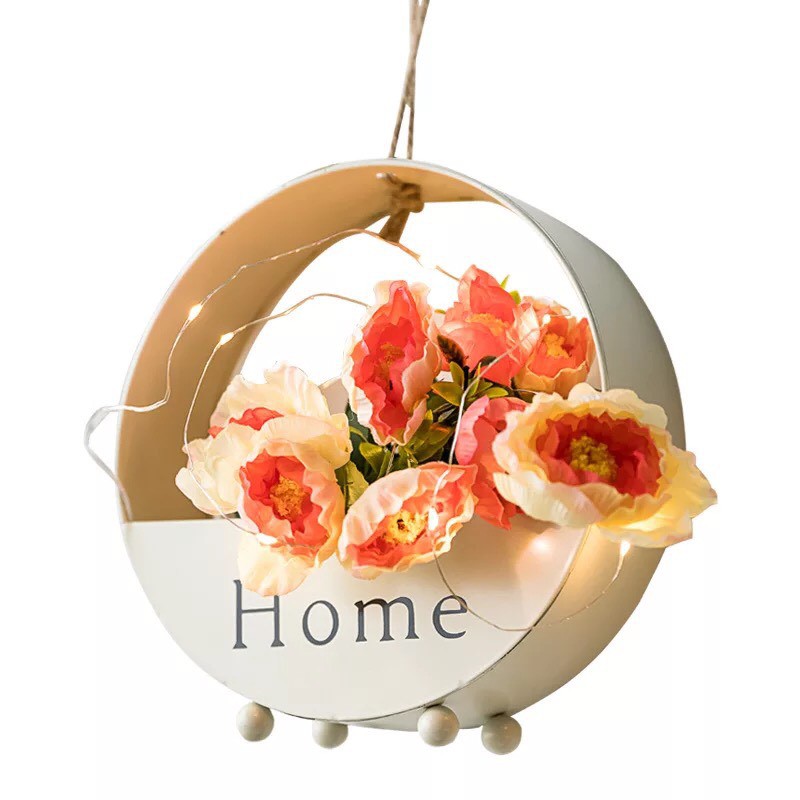 Lẵng hoa treo tường trang trí theo phong cách Châu Âu hiện đại- Thiết kế hình tròn độc đáo với chữ Home sẽ giúp bạn biến những bức tường nhàm chán, tẻ nhạt trong gia đình trở nên sinh động, phong cách hơn