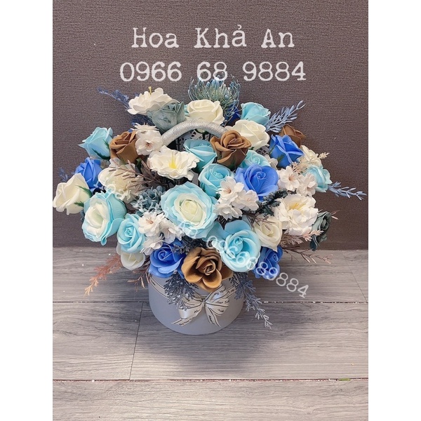 Lẵng hoa sáp mix hoa lụa cao cấp, bền vĩnh cửu. Thiết kế nhà Khả An
