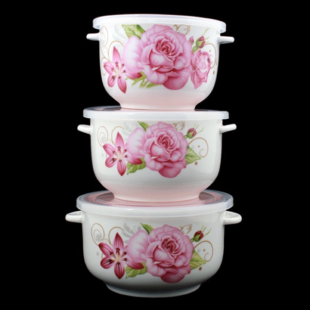 Bộ 3 tô sứ nắp hút chân không có quai cầm tiện lợi có thể dùng cho lò vi sóng hay cho vào tủ lạnh, bạn dễ dàng cầm hay di chuyển bát tới các vị trí khác nhau cả nóng cả lạnh.