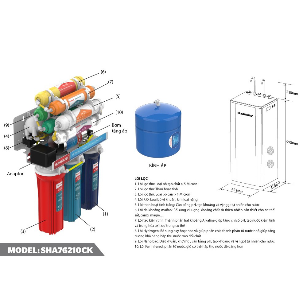 Hỗ trợ lắp đặt_ Máy lọc nước R.O nóng lạnh 10 lõi SUNHOUSE SHR76210CK