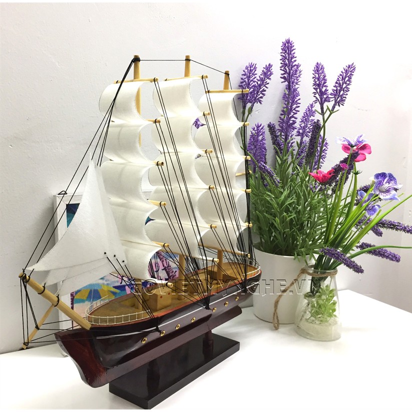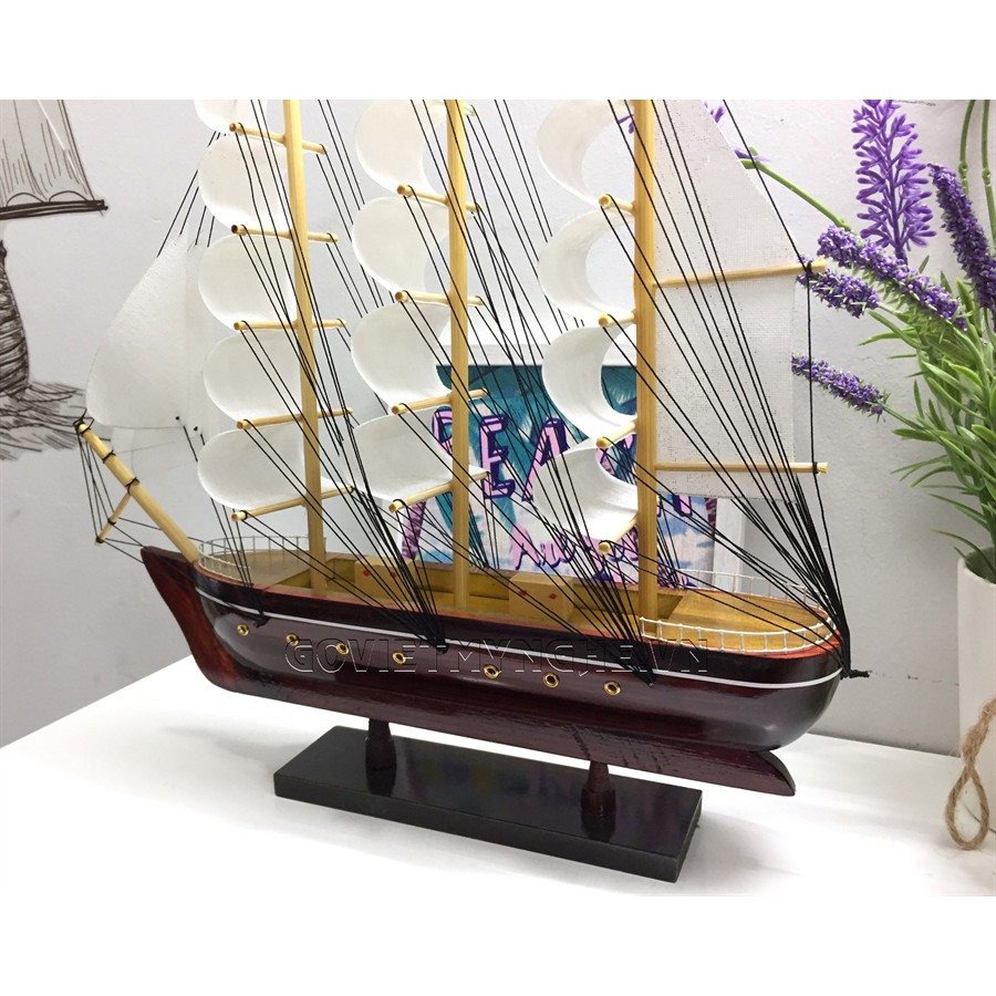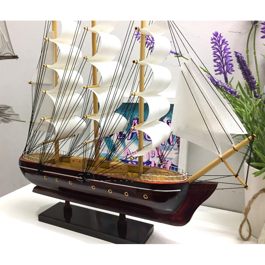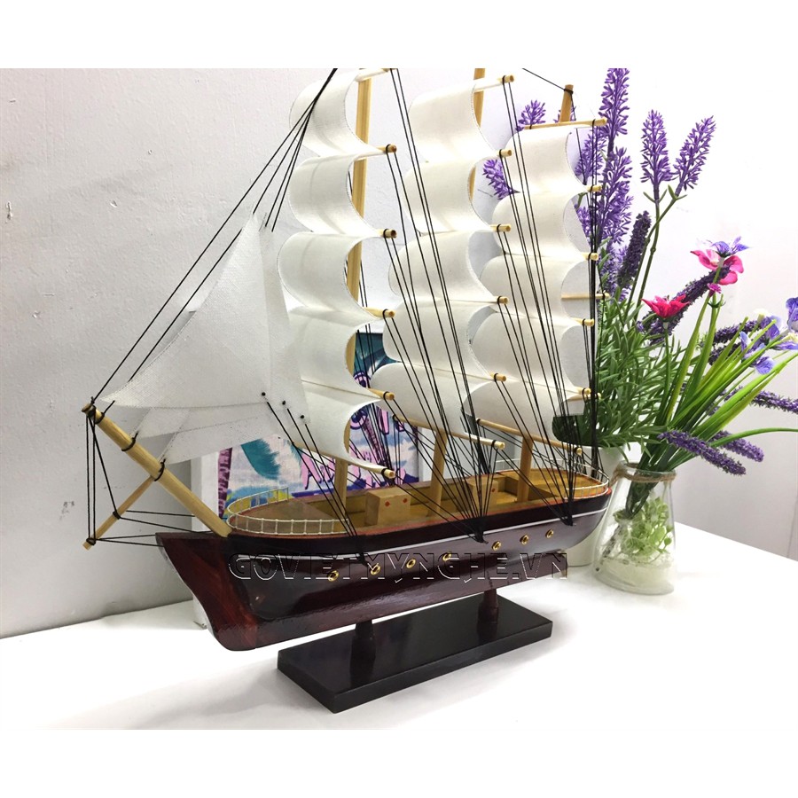 + Mô hình thuyền gỗ đã được lắp ráp hoàn chỉnh, sẵn sàng để trưng bày, trang trí.