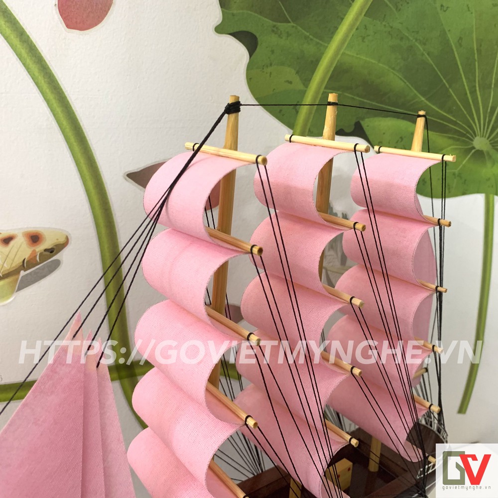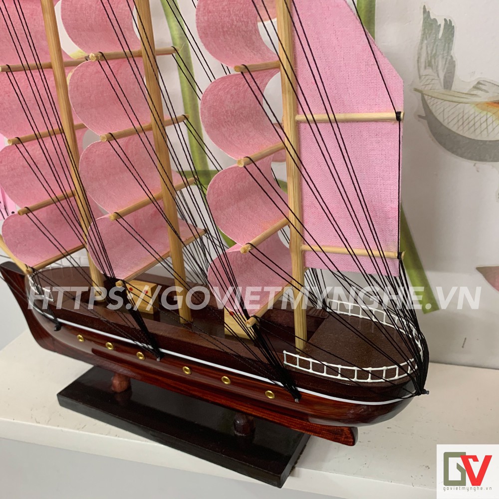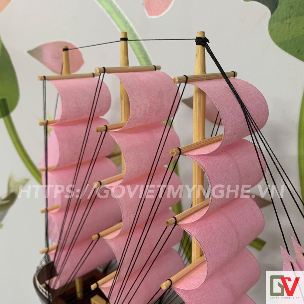 Nhà cửa & Đời sống > Trang trí nhà cửa > Khác || [Không lắp ráp] Mô hình thuyền gỗ chở hàng Le Belem - Dài 32cm - Buồm HồngCòn hàng