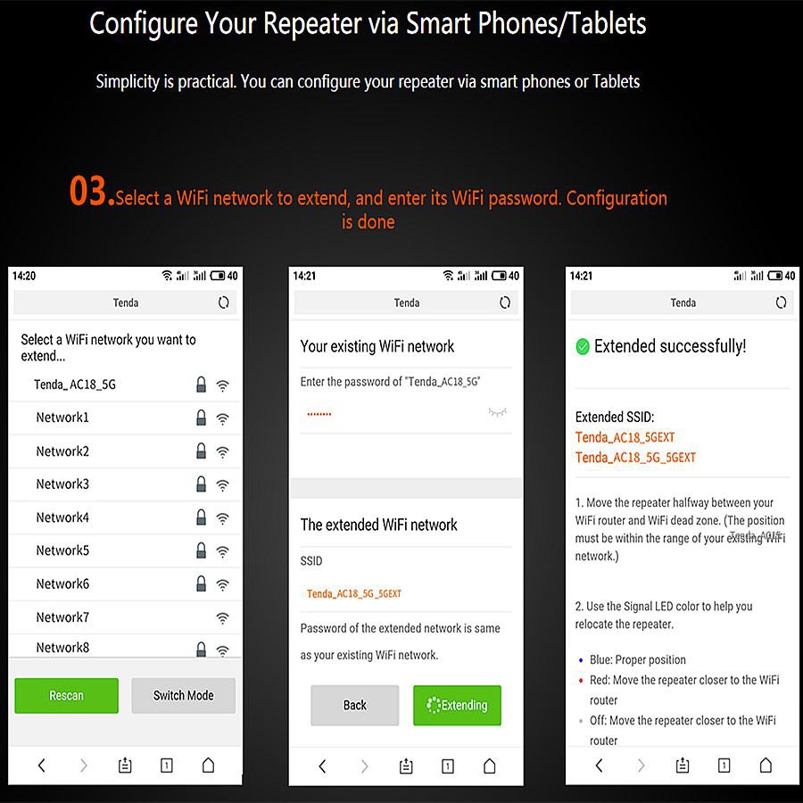 Đơn giản là thực tế. Bạn có thể định cấu hình bộ lặp của mình thông qua điện thoại thông minh hoặc Máy tính bảng. Bộ khuếch đại tín hiệu A18 được chuyển tiếp có thể phù hợp hoặc đặt lại với tuyến đường vượt trội.